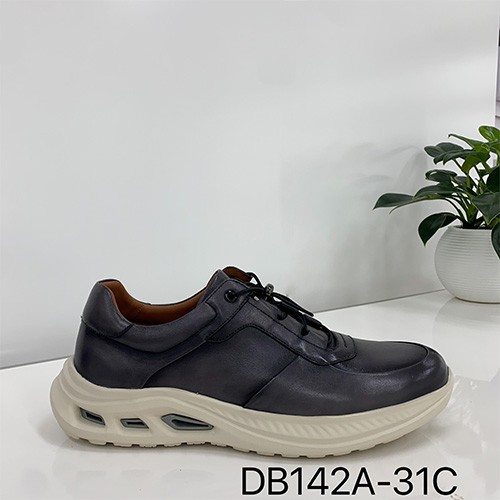 这款鞋子有灰、黑两个颜色,面料选用优质小牛皮精心制作而成,具有出色的柔韧性、亲肤的触感和卓越的质感。搭配米白色减震橡胶鞋底,您可以畅行无阻地行走千里。这款鞋子有两种颜色可供选择: